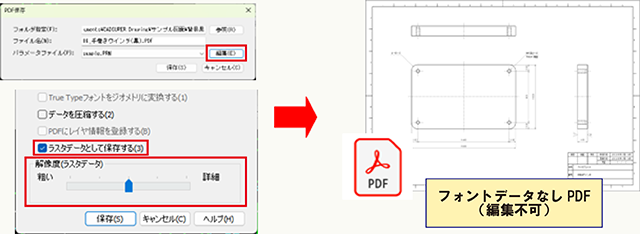 PDF保存コマンドで、ラスタデータとして保存できる機能を追加しました。