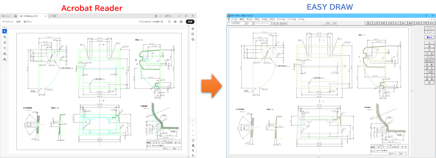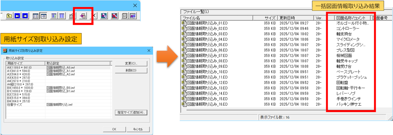 これにより、過去に作成したEASY DRAWデータについても、用紙サイズごとに図面情報をまとめて取り込むことが可能となりました。