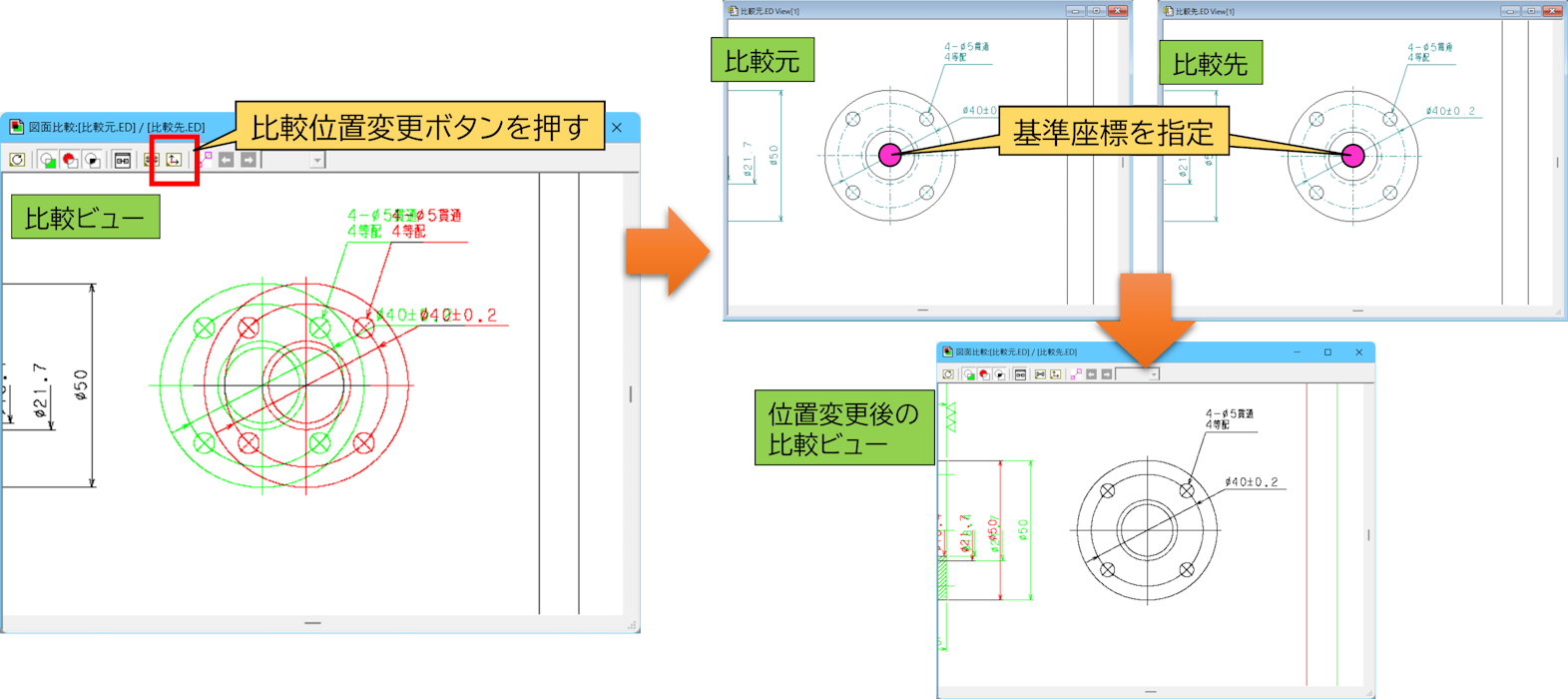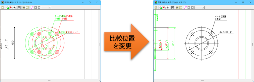②比較座標設定:比較中の図面の基準座標を変更し、比較し直す機能を追加しました。